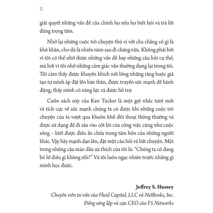 Những cuộc trò chuyện còn đọng lại trong ký ức của bạn thường là những cuộc trò chuyện đặc biệt ý nghĩa, khai mở cho bạn những vấn đề hay những quan điểm, suy nghĩ mới mẻ. Bởi vậy, nếu biết cách tận dụng những cuộc trò chuyện đơn giản, đời thường, bạn hoàn toàn có thể biến chúng trở thành những bài học, bí quyết cực kỳ giá trị cho công việc và cuộc sống tương lai.