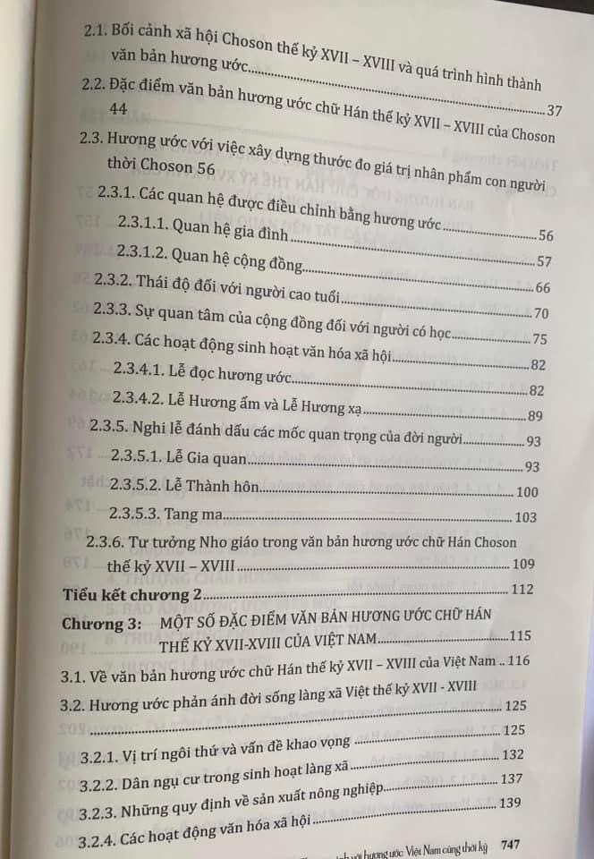 Hương ước của Triều Tiên và Việt Nam là đối tượng nghiên cứu của nhiều công trình khoa học của nhiều học giả trong và ngoài nước. Tuy nhiên, hiện nay chưa có một chuyên luận nào nghiên cứu một cách hệ thống hương ước chữ Hán của cả hai nước trong giai đoạn lịch sử cụ thể. Xuất phát từ tình hình hợp tác hữu nghị hai nước Việt Nam và Triều Tiên, nhu cầu nghiên cứu hương ước và tìm hiểu những nét dị đồng trong văn bản hương ước chữ Hán của Việt Nam và Triều Tiên trong một giai đoạn lịch sử nhất định, chúng tôi tiến hành nghiên cứu chuyên luận "Nghiên cứu văn bản hương ước Choson thế kỷ XVII- XVIII và so sánh với hương ước Việt Nam cùng thời kỳ". Sở dĩ chúng tôi chọn nghiên cứu hương ước chữ Hán ở thế kỷ XVII - XVIII vì vào thời kỳ này trong khi hương ước ở Triều Tiên đã được văn bản hóa, phát triển mạnh và có ảnh hưởng sâu đậm đến cách sống, ứng xử xã hội của người Triều, thì ở Việt Nam hương ước được văn bản hóa chỉ mới xuất hiện rải rác ở một số làng trong khi cả Việt Nam và Triều Tiên đều tiếp thu, chịu ảnh hưởng của Nho giáo và văn hóa Trung Hoa từ thởi kỳ cổ, trung đến cận đại. Biểu hiện cụ thể ở hai thế kỷ này là cả hai nước vẫn đưa ra nhiều chính sách khuyến khích Nho giáo, lập nên các trường Quốc học, ban bố quy định thi cử, đào tạo đội ngũ Nho quan phục vụ vương triều. Chuyên luận này với mong muốn chỉ ra những nét đặc sắc trong phong tục làng xã cổ truyền của hai nước đồng văn, trên hết là góp phần vào việc bảo tồn, chấn hưng văn hóa làng xã trong thời kỳ hội nhập và giao lưu trên thế giới. Nội dung phản ánh của hương ước hai nước rất phong phú, đa dạng bao quát toàn bộ đời sống xã hội của người dân hai nước bấy giờ. Vì vậy, nghiên cửu hương ước giai đoạn này là việc làm vừa mang ý nghĩa lý luận vừa mang ý nghĩa thực tiễn.