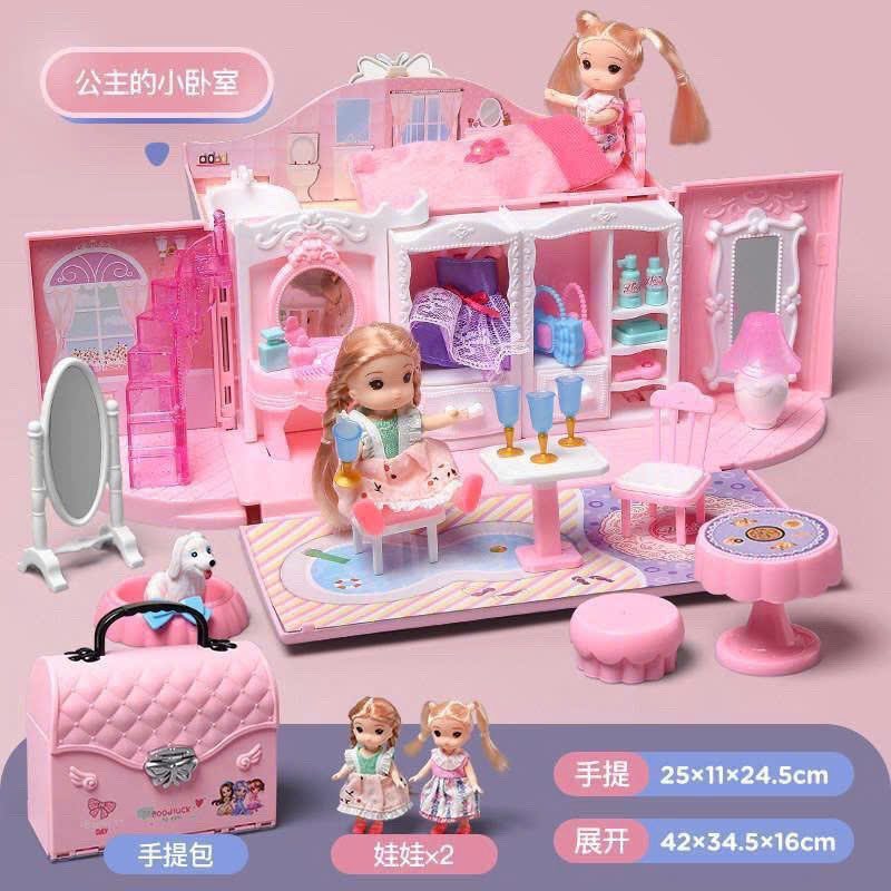 ✨Ngôi Nhà Búp Bê Thiết Kế Dạng Túi Xách Kèm 2 Búp Bê, Đồ Chơi Búp Bê Dễ Thương Cho Bé