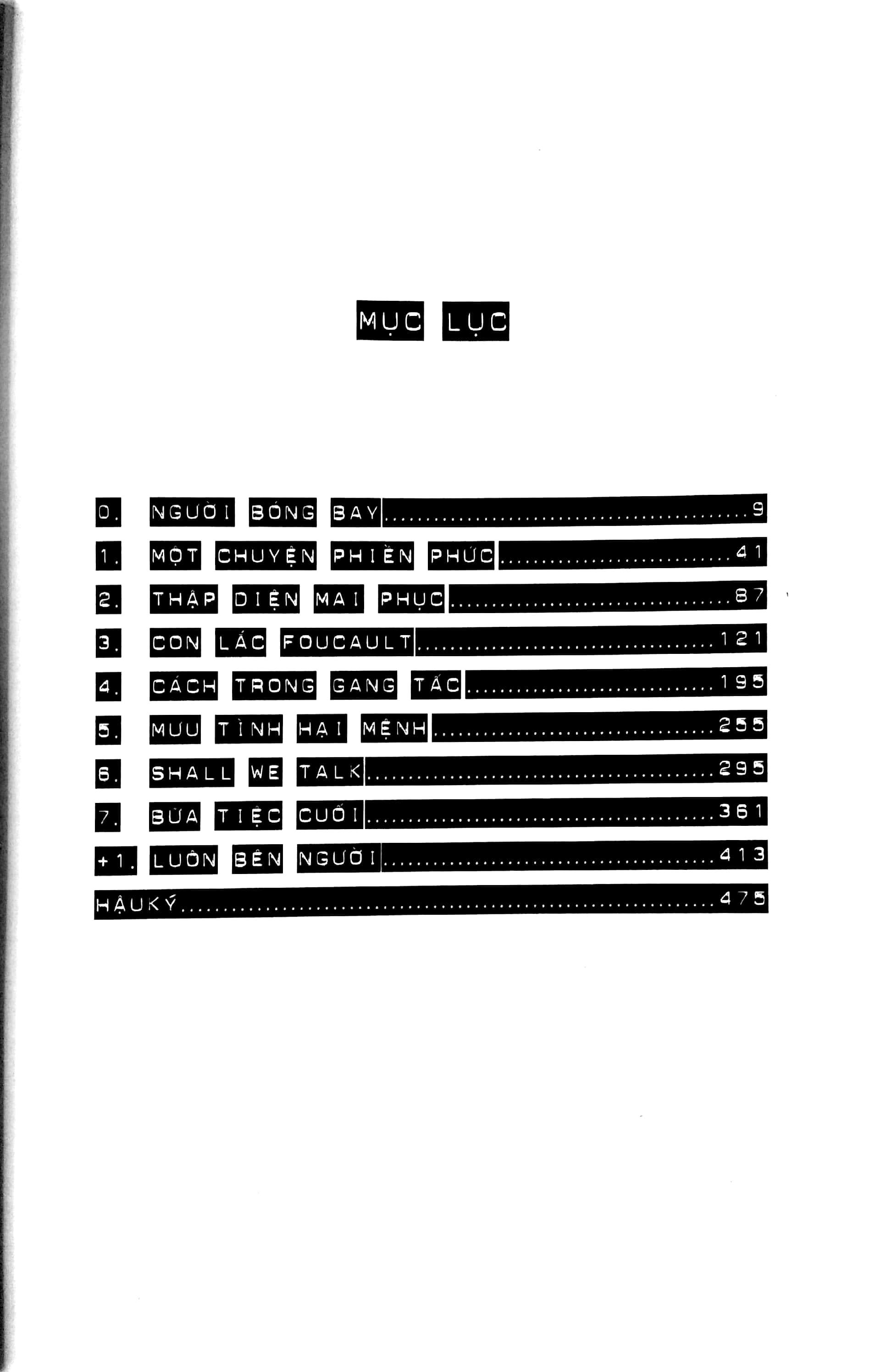 Người Bóng Bay gồm 9 mẩu truyện, được viết dàn trải trong 9 năm song kết nối khéo léo với nhau để tạo nên một vở kịch đấu trí đầy chất hài hước đen, là “ván chơi domino” thú vị giữa Chan Ho-Kei của quá khứ và hiện tại.