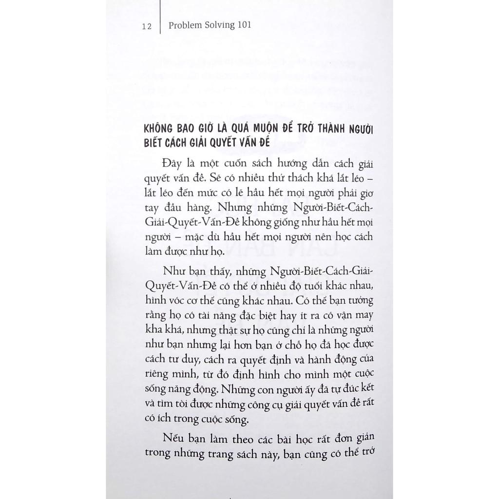 Và theo như tác giả chia sẻ thì ông không đưa ra một tập hợp những kỹ năng bởi “Giải quyết vấn đề không chỉ cần các kỹ năng, mà còn cần hơn là một hệ thống tư duy giúp con người phát huy tối đa khả năng của mình và tạo ra một thế giới tốt đẹp hơn. Những người muốn giải quyết vấn đề thực sự ít khi chấp nhận những điều kiện hiện có mà luôn chủ động tìm cách cải thiện môi trường xung quanh mình”.