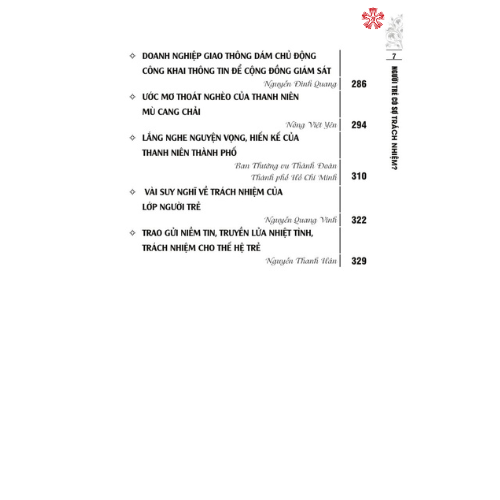 Các tác giả cùng trao đổi, chia sẻ quan điểm, suy nghĩ, trăn trở, thể hiện niềm tin, sự khẳng định đối với vai trò của người trẻ trong công việc và cuộc sống hiện nay; đưa ra những góc nhìn, đánh giá đúng đắn, khách quan về thế hệ trẻ và lý do tại sao cần trao cho họ những cơ hội, chính sách ưu tiên để phát triển. Đặc biệt, ý nghĩa xuyên suốt cuốn sách mà tập thể tác giả muốn gửi gắm là sự động viên, khích lệ thế hệ trẻ cần nuôi dưỡng, giữ gìn “vốn quý” của tuổi trẻ, không ngừng phát triển và sáng tạo ra nhiều giá trị hơn nữa nhằm bảo đảm một tương lai thành công, góp phần hoàn thành sứ mệnh lịch sử của mình. Trong đó, có một số bài tiêu biểu như: bài viết “Bệnh sợ trách nhiệm” của Tổng Bí thư Nguyễn Phú Trọng đăng trên Tạp chí Cộng sản năm 1973; “Vấn đề thanh niên trong tư tưởng Hồ Chí Minh” của GS.TS Tạ Ngọc Tấn, Phó Chủ tịch Thường trực Hội đồng Lý luận Trung ương; “Nâng cao hiệu quả công tác tư tưởng đối với thanh niên trong tình hình mới” của PGS.TS Lê Hải Bình, Ủy viên dự khuyết Trung ương Đảng, Phó Trưởng Ban Tuyên giáo Trung ương; “Trách nhiệm của đội ngũ công chức trẻ trong giai đoạn hiện nay” của PSG.TS Phạm Minh Tuấn, Phó Tổng biên tập phụ trách Tạp chí Cộng sản; "Học sinh, sinh viên, thanh niên dân tộc thiểu số rèn đức, luyện tài, phấn đấu vươn lên đóng góp vào sự phát triển của cộng đồng, dân tộc" của đồng chí Hầu A Lềnh, Ủy viên Trung ương Đảng, Bộ trưởng, Chủ nhiệm Ủy ban Dân tộc; “Làm thế nào để đội ngũ trí thức trẻ phát huy được trách nhiệm, hoàn thành tốt vai trò lịch sử của mình?” của GS.TS Phùng Hữu Phú.