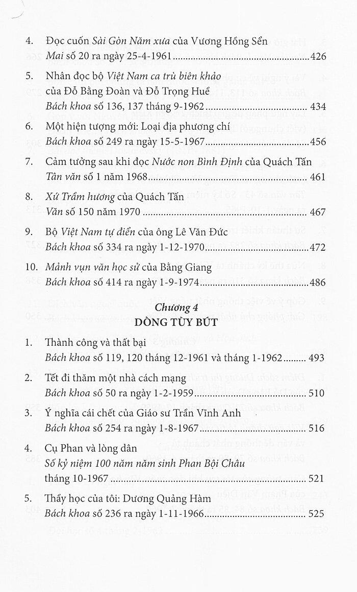 Trước khi trích giới thiệu các bài báo của Nguyễn Hiến Lê, soạn giả đã dành hơn trăm trang cho phần Dẫn nhập, bao gồm 2 nội dung: (1) Chân dung Nguyễn Hiến Lê qua trang báo; (2) Nguyễn Hiến Lê và đời sống báo chí miền Nam trước 1975. Tiếp theo là “Khảo luận về tác phẩm đăng báo của Nguyễn Hiến Lê”, đề cập Nguyễn Hiến Lê theo dòng thời cuộc và Nguyễn Hiến Lê bên lề con chữ, tức hai mảng chủ đề lớn sẽ được sắp xếp, giới thiệu cụ thể ở phần tiếp sau.