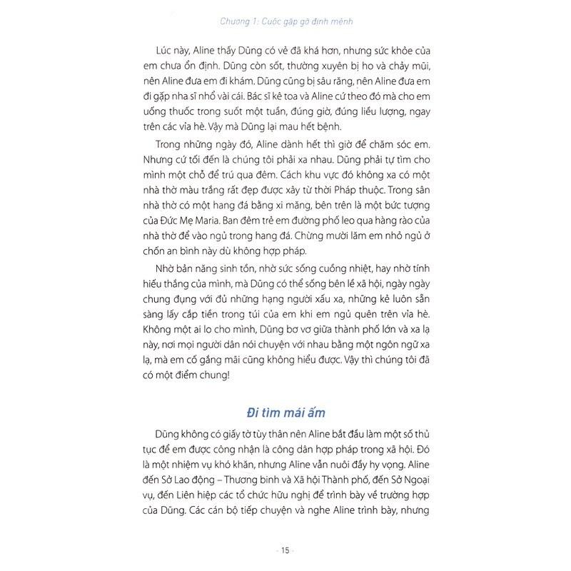 Câu chuyện bắt đầu khi cô vừa bước sang tuổi 20. Trong một chuyến du lịch vòng quanh thế giới, cô đã gặp một bé trai mồ côi đang cận kề cái chết tại một