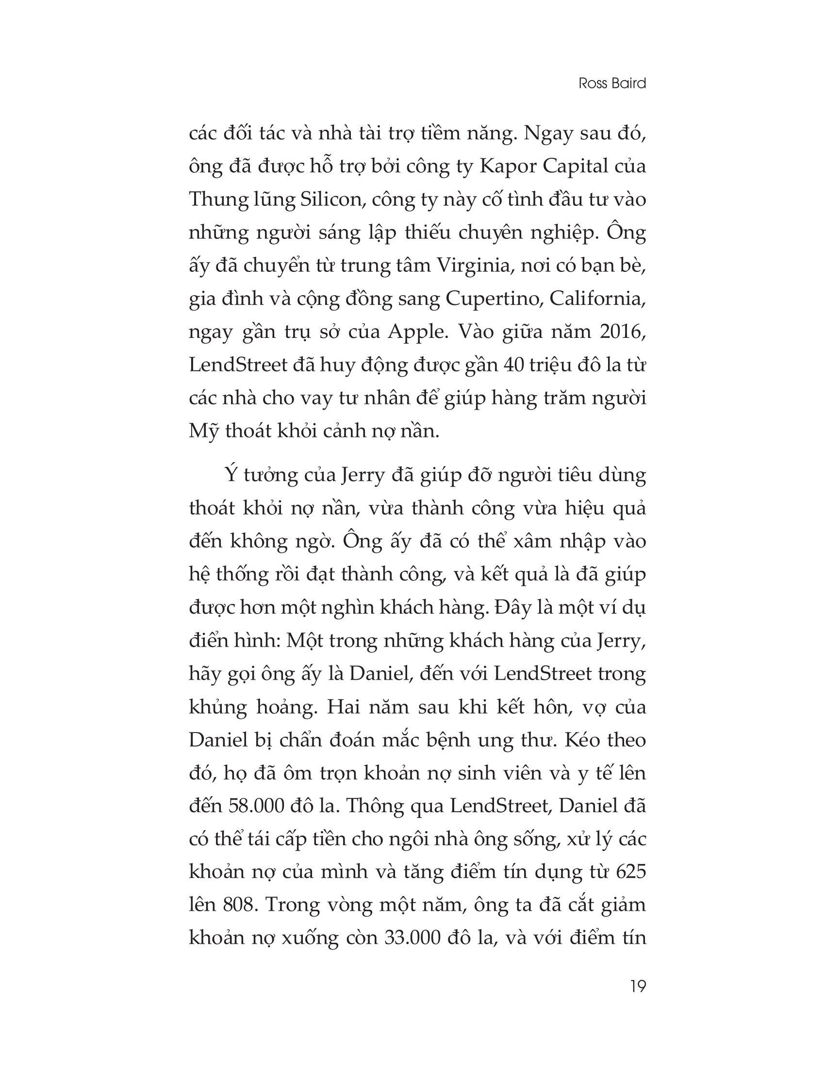 Ross Baird là một doanh nhân và nhà đầu tư nổi tiếng. Ông thành lập Village Capital vào năm 2009 và hợp tác với hơn 20 công ty trong danh sách Fortune 500 để giúp các tổ chức lớn khám phá những cải tiến mới. Sách của Ross đã được hơn 50 cơ quan truyền thông, bao gồm New York Times, Bloomberg Business Week, Inc., và FastCompany giới thiệu. Ông cũng đã giảng dạy về kinh doanh tại Đại học Virginia từ năm 2012.