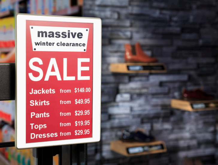- Chứng nhận an toàn : CE, FCC, RoHS, EN60950-1, IEC60950-1, EN55022, EN55024 GIẢI PHÁP Giải pháp nhãn giá điện tử (ESL) của chúng tôi giúp loại bỏ phương pháp dán nhãn truyền thống, tiết kiệm nhân công và các chi phí phát sinh khác khi thay đổi giá cả và thông tin của sản phẩm. Bất cứ khi nào cửa hàng tiếp nhận lô hàng mới và trưng bày, nhân viên không cần phải trải qua thao tác in ấn các bảng giá bằng chất liệu giấy theo cách thông thường. Khi ứng dụng Nhãn điện tử ESL, việc thay đổi thông tin đều được thao tác trên phần mềm và hệ thống sẽ tự động cập nhật thông tin mới ngay trên bảng hiển thị.