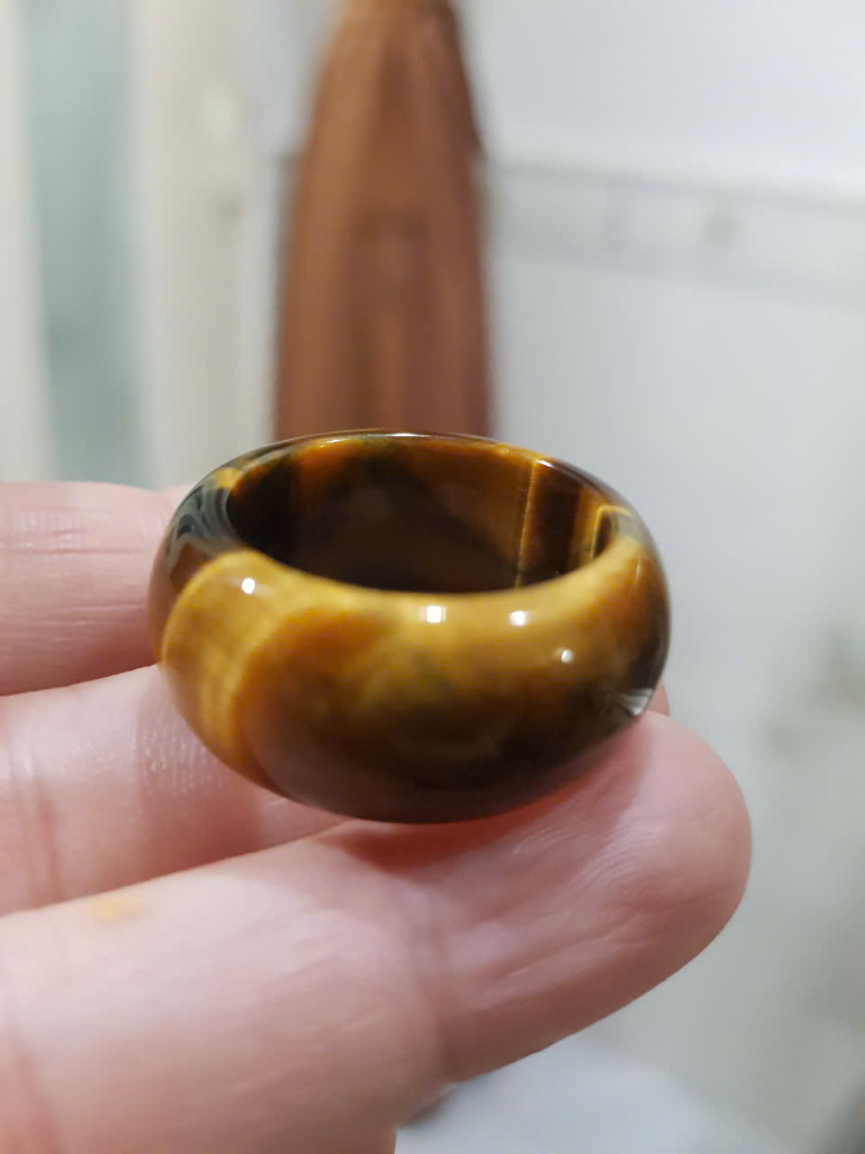 Nhẫn Nam Mắt Hổ Vàng Nâu Tiger Eyes Tự Nhiên đậm bóng đẹp ni 20mm Cao 12mm / 11mm dầy 4mm Sunny Q8