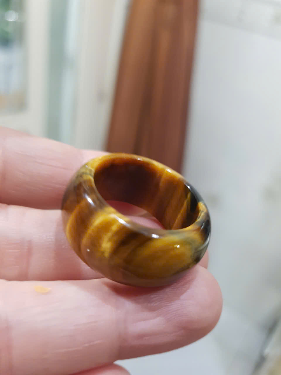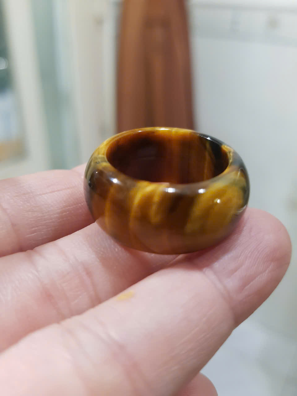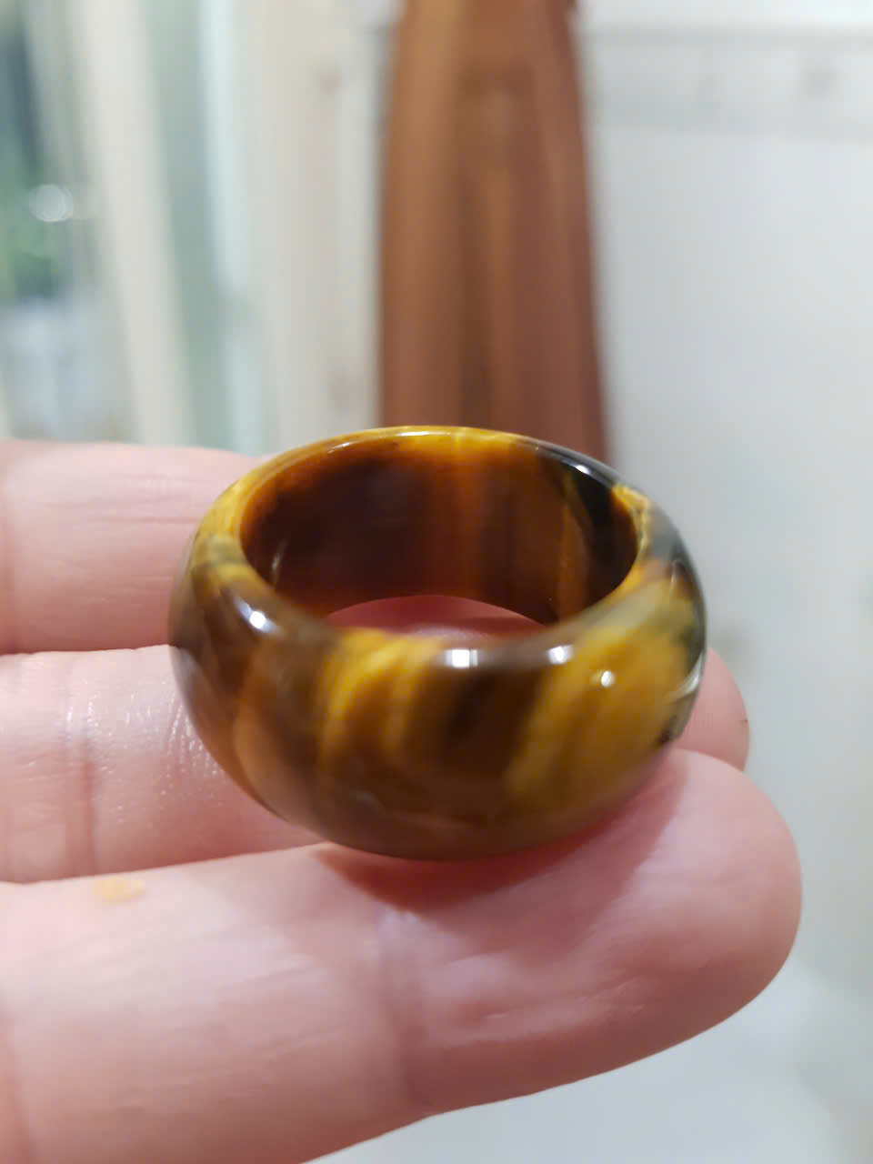 ✨Nhẫn Nam Đá Mắt Hổ Vàng Nâu Tiger Eyes Tự Nhiên đậm bóng đẹp mới ni 20mm x Cao 12mm / 11mm dầy 4mm nam mệnh Kim mệnh Thổ mệnh Thủy đeo ni 20mm rẻ đẹp ạ