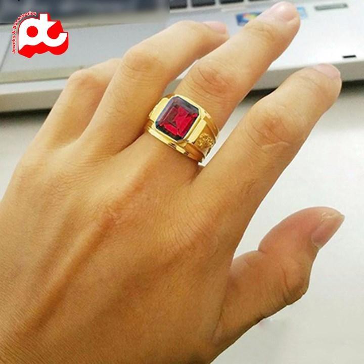 Nhẫn nam titan cao cấp thời trang đẹp inox thép không gỉ nhẫn mỹ mạ vàng trangsucpt đá đỏ PTNNA221 Thông tin chi tiết: Chất liệu: titan cao cấp , thép không gỉ, không đen,