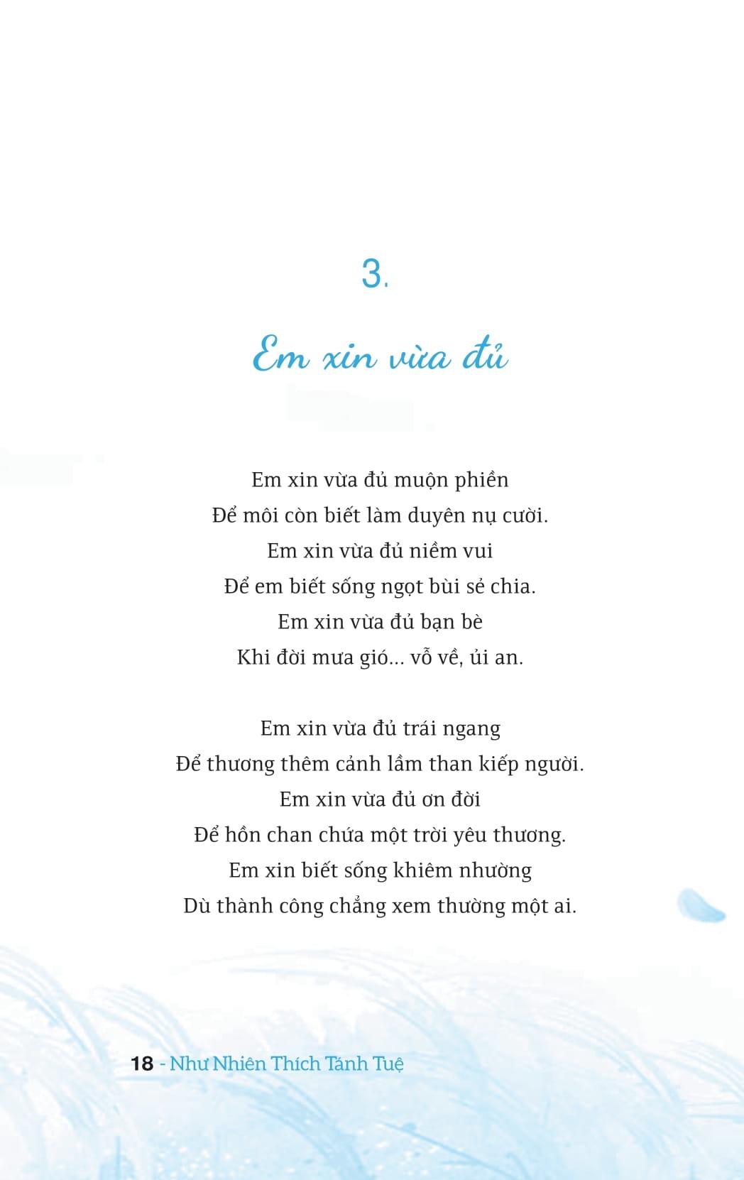Sự thiện lương và bình an trong nội tâm của bạn sẽ góp phần tạo nên sự bình an của thế giới bên ngoài. Và sự bình an chung ấy sẽ ảnh hưởng đến nhiều người khác quanh bạn. Thế nên, ngay giây phút này, bạn hãy dám sống như một bông hoa, hồn nhiên nở, hết lòng dâng hiến vẻ đẹp và hương thơm cho đời.