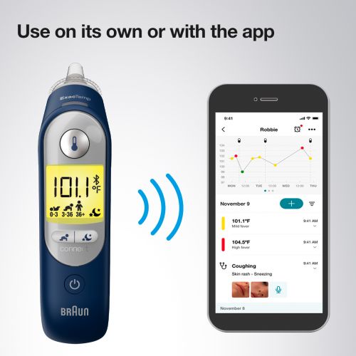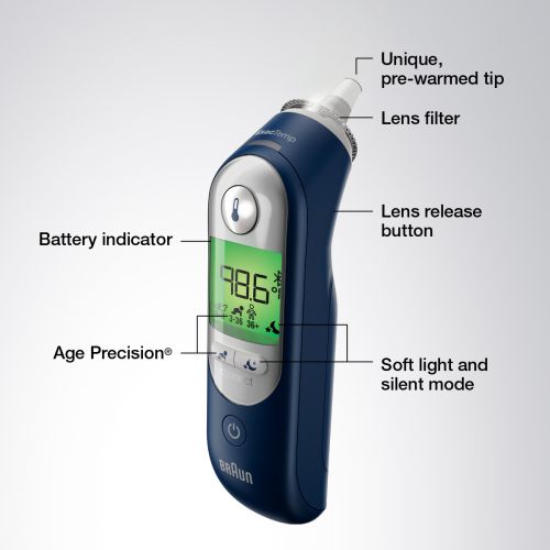 - Nhiệt kế đo tai dễ sử dụng này có Công nghệ Age Precision để hướng dẫn sốt có thể điều chỉnh theo độ tuổi và màn hình được mã hóa màu để dễ dàng giải thích kết quả.