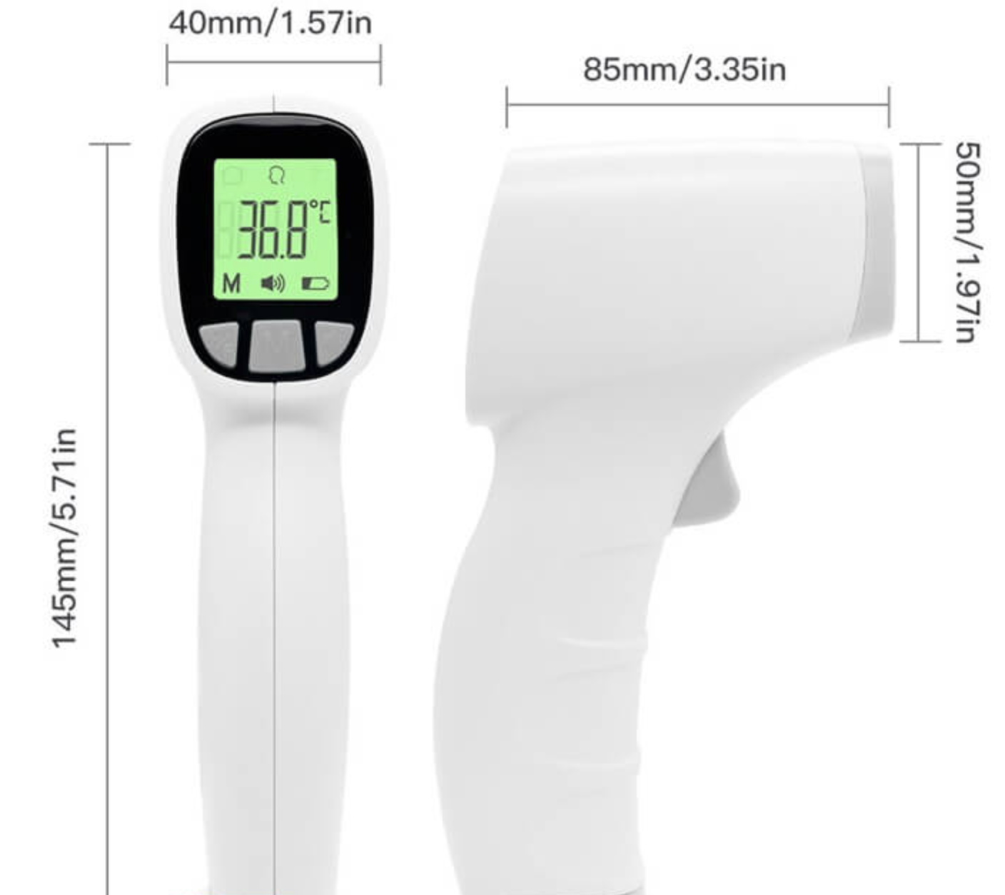 Nhiệt kế điện tử hồng ngoại không tiếp xúc *Công nghệ đo cảm biến tia hồng ngoại cho kết quả chính xác cao *Đo nhiệt độ cơ thể ở trán không tiếp xúc, trả kết