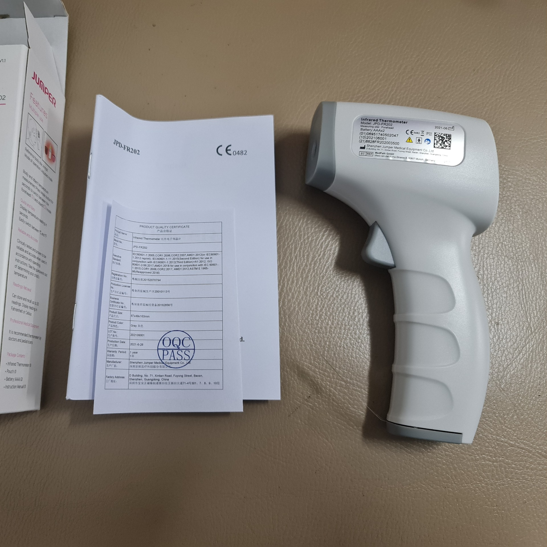 THÔNG SỐ KĨ THUẬT - Loại: nhiệt kế - Nhãn hiệu: Jumper - Model: JPD-FR203 - Cụ phân loại: Class II - Giấy chứng nhận: CE ISO FDA - Hiển thị: Đèn nền màn
