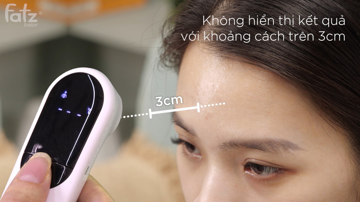 - Không cho kết quả đo thân nhiệt khi khoảng cách từ nhiệt kế đến trán quá 3cm. Việc này giúp người dùng tránh nhận được các kết quả đo không chính xác.