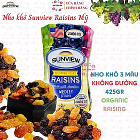 - Nho khô Mỹ Sunview 425g là thương hiệu nổi tiếng khắp thể giới với những lợi ích to lớn cho sức khỏe, trong nho khô có chứa hàm lượn cao Vitamin B, C acid folic và nhiều dưỡng chất.