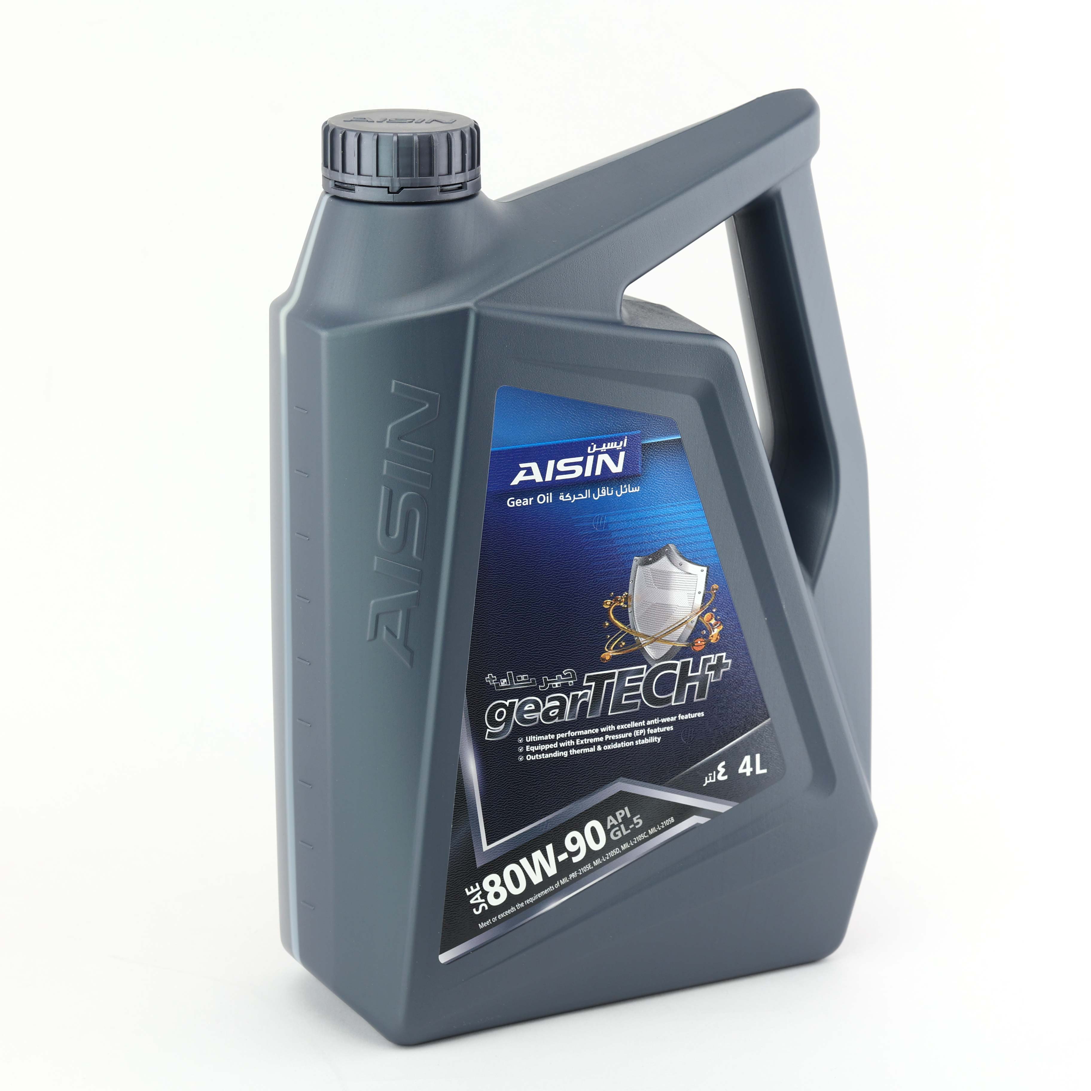 Nhớt hộp số thường AISIN GSL58094P 80W-90 GL-5 gearTECH+ Gear Oil 4L là dầu bôi trơn theo tiêu chuẩn API GL-5, MIL-PRF-20105E, MIL-L21050D, MIL-L-2150B, có khả năng duy trì nhiệt độ hộp số ổn định và