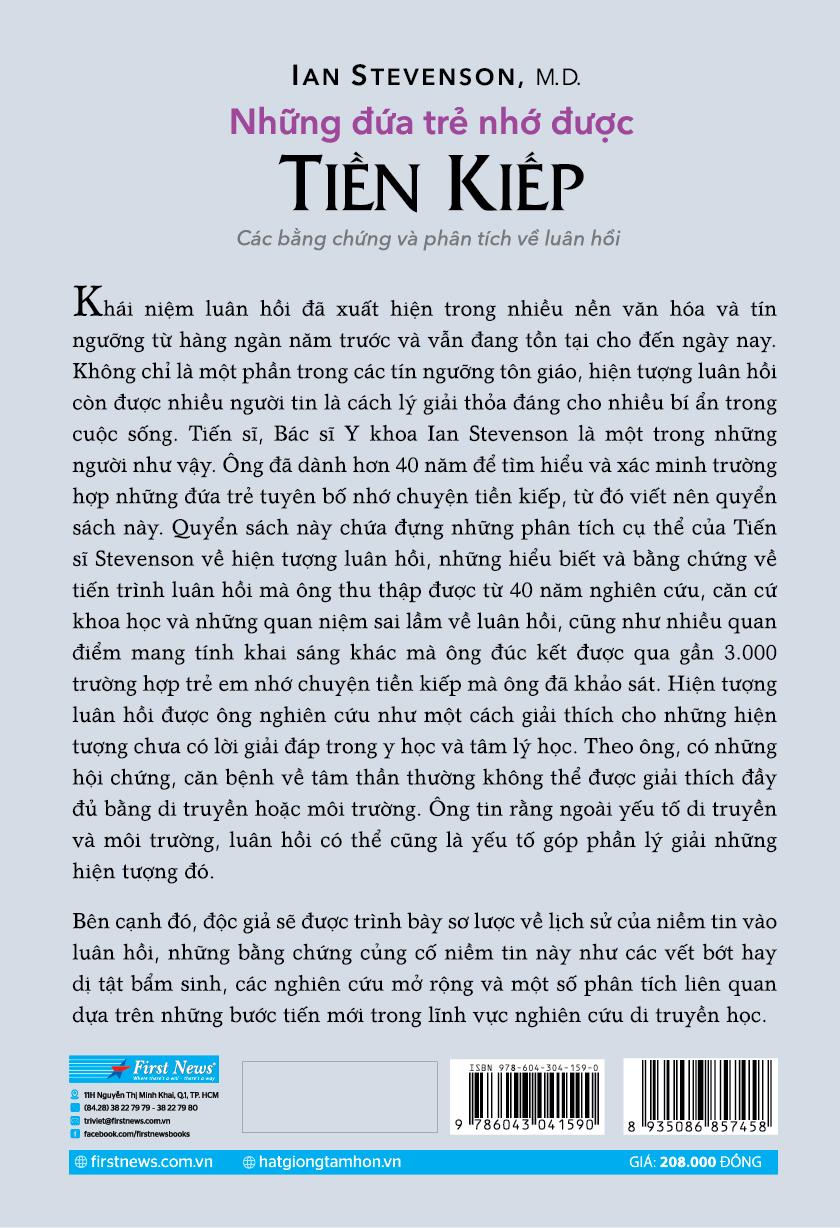 Khép lại quyển sách, bạn đọc có thể lựa chọn tin hoặc không tin vào luân hồi nhưng chắc chắn rằng bạn sẽ có một trải nghiệm hoàn toàn mới từ những câu chuyện về tiền kiếp đã được kiểm chứng. Đúc kết lại, những bằng chứng về luân hồi trong “Những đứa trẻ nhớ được tiền kiếp” đều liên quan đến mối quan hệ nhân quả giữa hai kiếp sống, cũng như nhiều điều về thế giới tâm linh bí ẩn mà chúng ta chưa nhận ra.