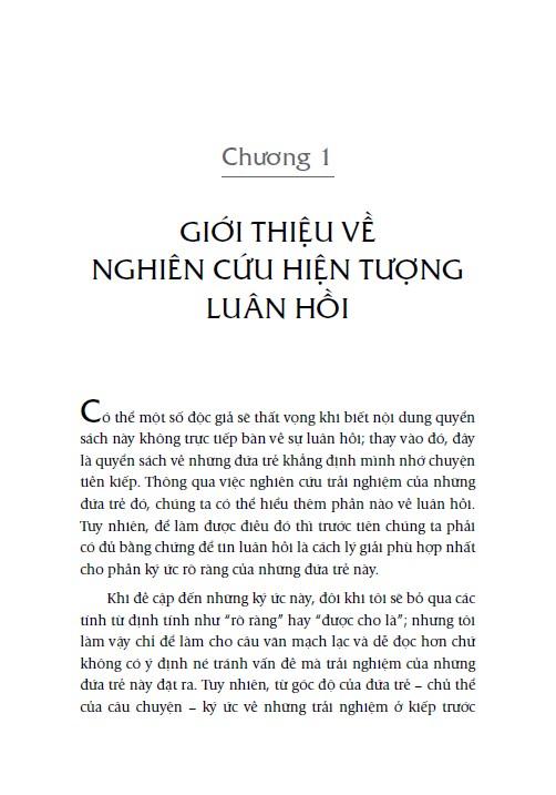 “Những đứa trẻ nhớ được tiền kiếp” không trực tiếp bàn về luân hồi mà hướng trọng tâm đến việc nghiên cứu các dấu hiệu chứng tỏ ký ức của một người vẫn tồn tại sau khi chết. Thông qua 11 chương sách, tác giả đã đưa ra nhiều bằng chứng khoa học thuyết phục nhất chứng minh ký ức của chúng ta vẫn tồn tại sau khi chết. Ông tin rằng, con người có thể nhớ lại tiền kiếp sau khi được tái sinh vào một kiếp sống mới.