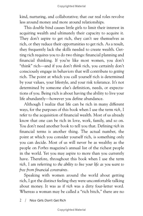 In NICE GIRLS DON'T GET RICH, Dr. Frankel offers women financial and investment advice for succeeding in life. Although women may not know it, certain behaviors and habits that they learned when they were girls