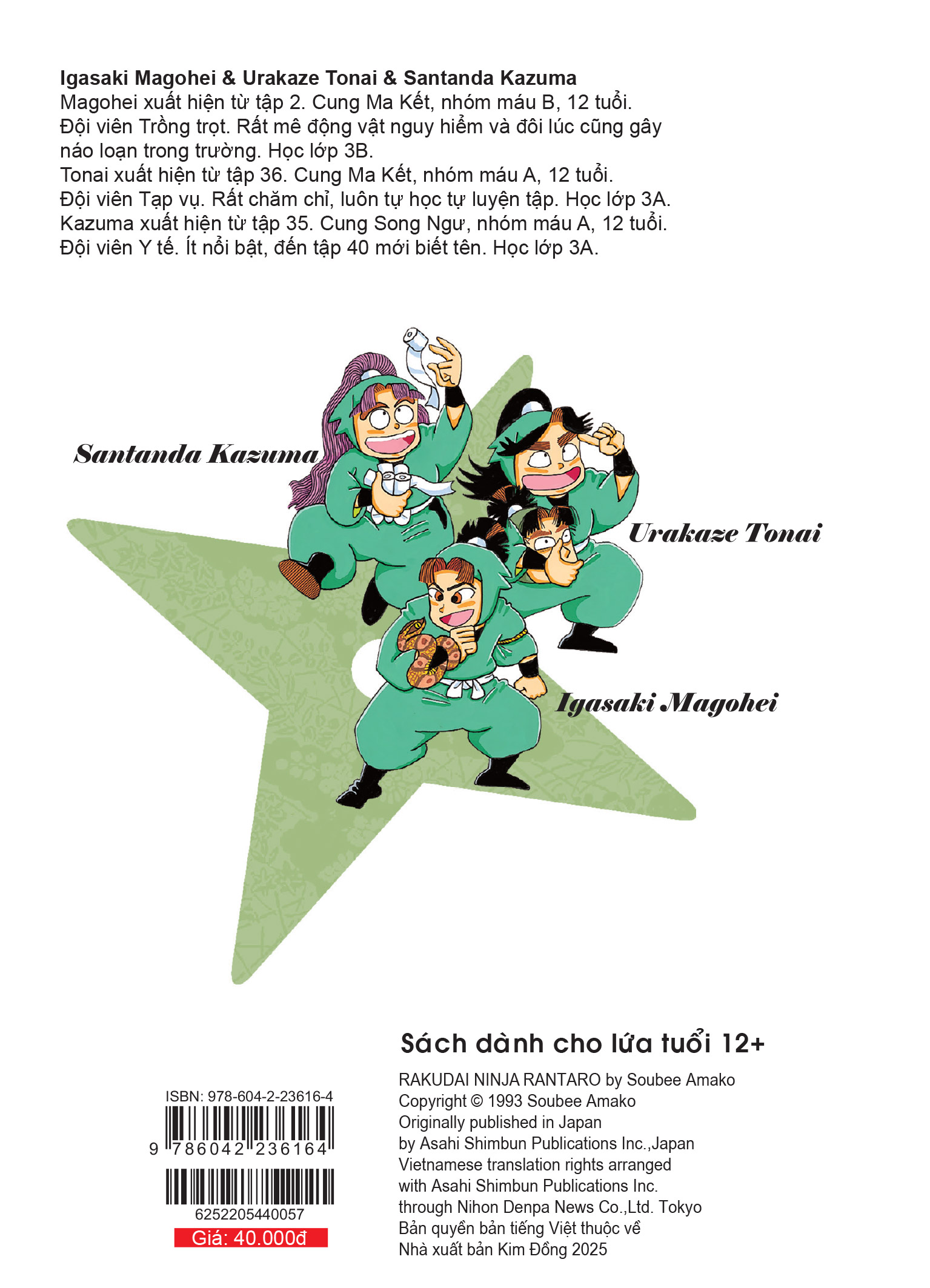 Công ty phát hành: Nhà Xuất Bản Trẻ Tác giả: Kazuya Kusumoto Dịch giả: Takara Nhà Xuất Bản: Nhà Xuất Bản Trẻ Năm Xuất Bản: 2024 Ngôn Ngữ: Tiếng Việt Trọng lượng (gr): 200 Kích Thước Bao