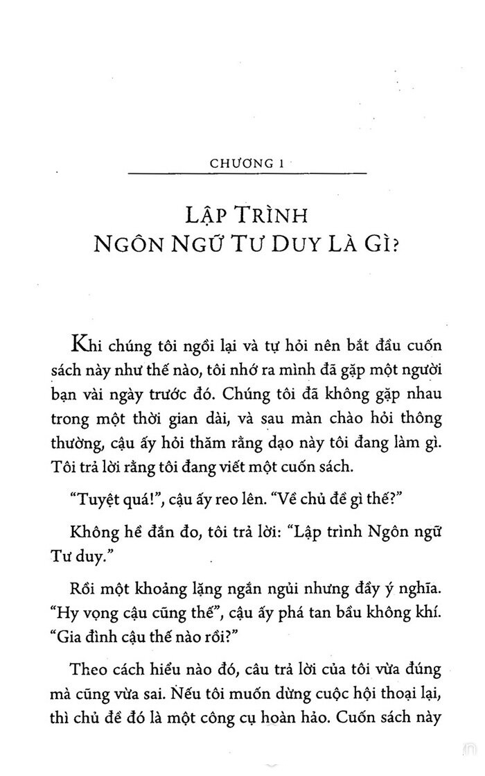 “NLP là một cách thức tiếp cận đầy giá trị và hấp dẫn về chủ đề học tập và giao tiếp. Cuốn sách này là một sự dẫn nhập tuyệt vời vào ngành nghiên cứu này.” - TONY BUZAN