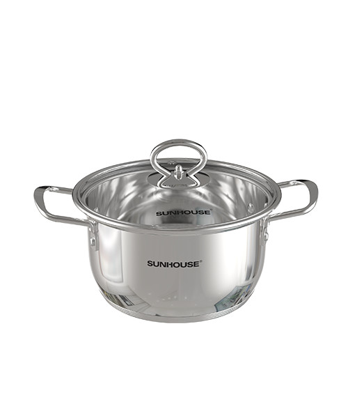 Nồi inox 5 đáy SUNHOUSE SHG788-24 sử dụng được với mọi loại bếp, kể cả bếp từ. Kích thước 24 cm thích hợp để nấu canh, nấu lượng thức ăn dành cho 3 – 5 người và có thể luộc gà.