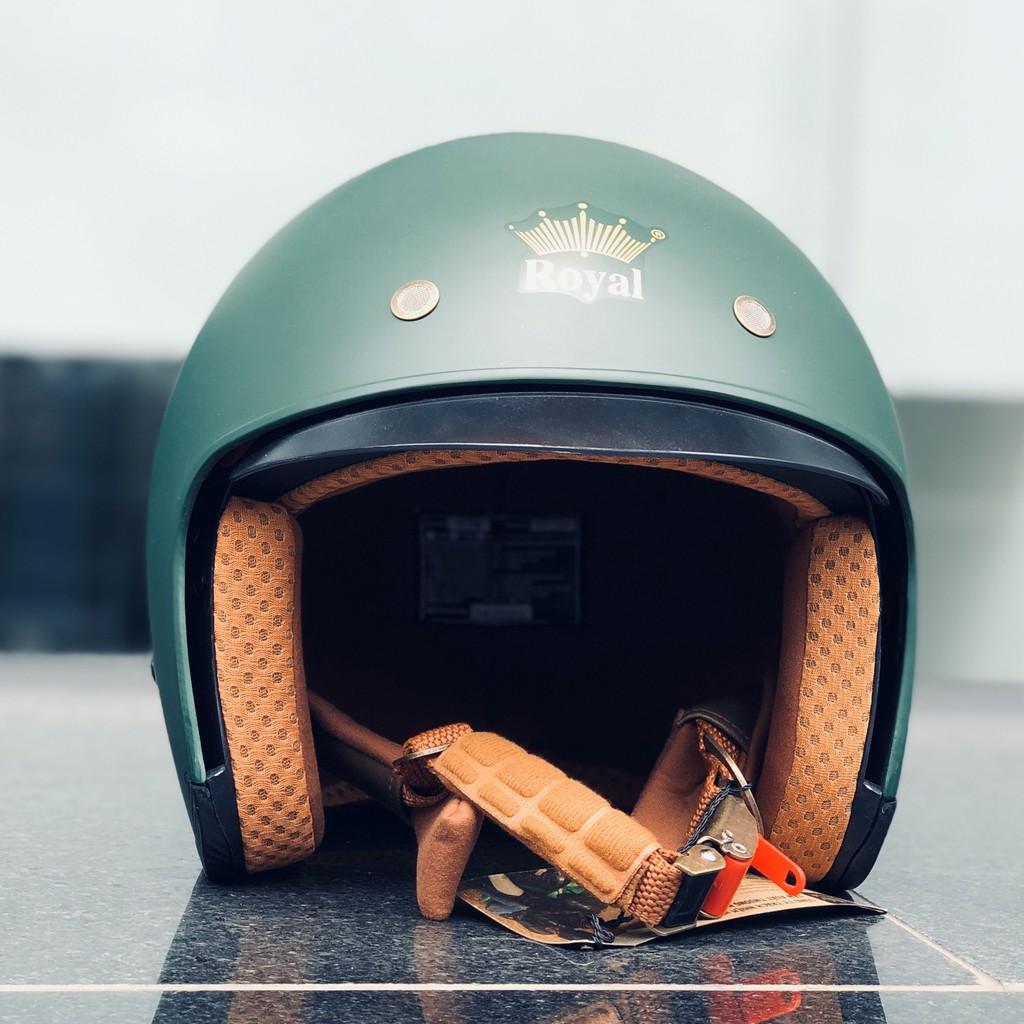 ✨Nón bảo hiểm 3/4 ROYAL M139 có kính âm màu XANH LÍNH NHÁM