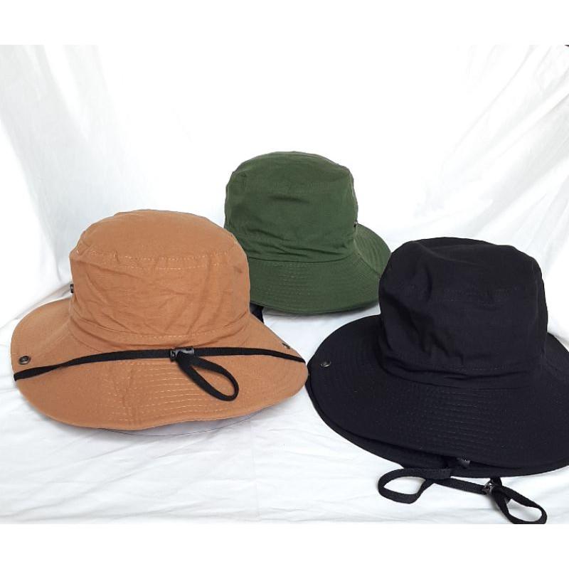 Vải Kaki dày dặn nhưng không nóng vì là 100%cotton. Có dây đeo không lo gió bay. Nút bấm kim loại 2 bên vành nón để bẻ lên cho ngầu luôn. Shop nhận thêu logo