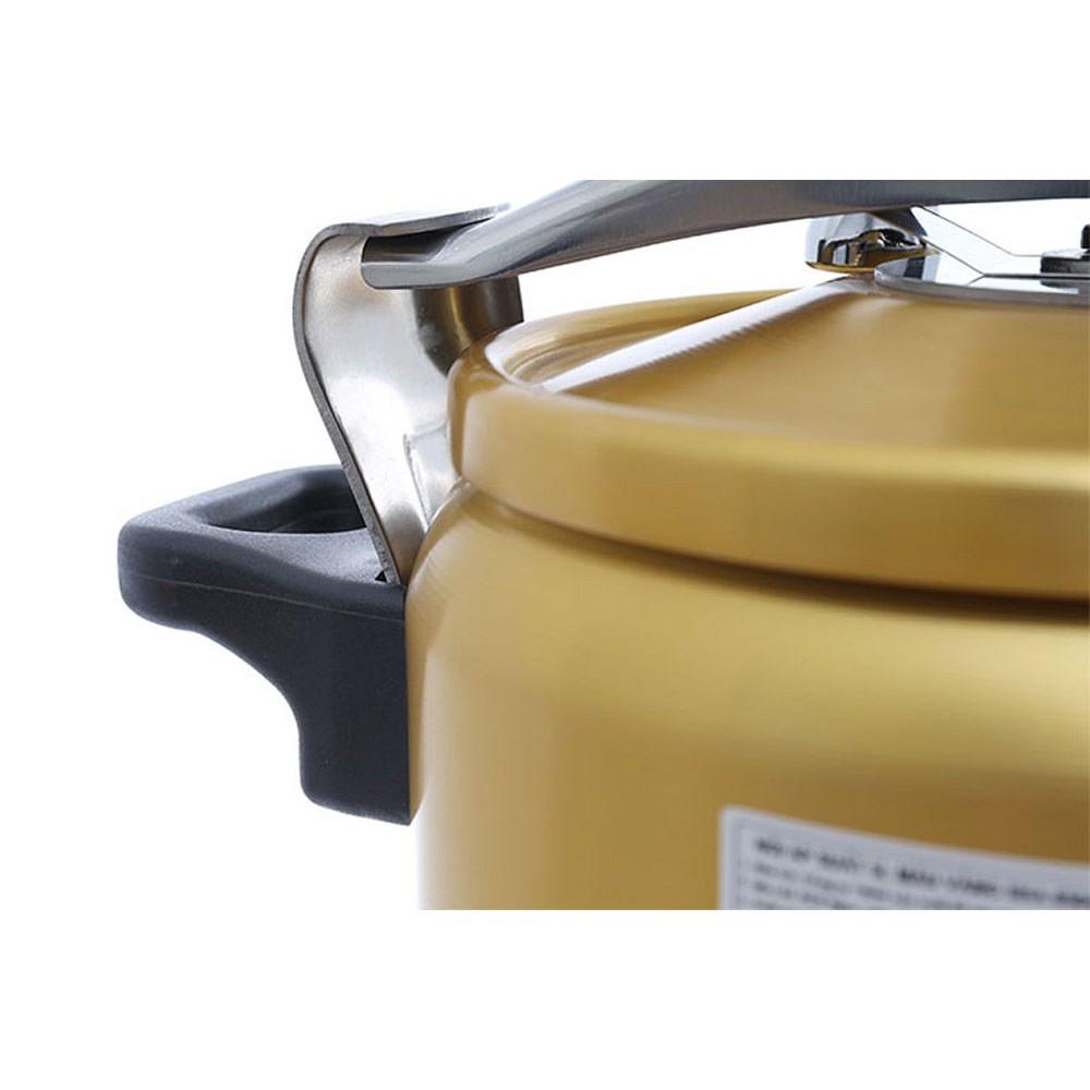 Sản phẩm có màu vàng nổi bật, kiểu dáng sang trọng, phù hợp với mọi không gian bếp. Thân và nắp nồi được làm bằng chất liệu hợp kim siêu bền, xử lý bởi công nghệ anod, không bị han gỉ nên rất an toàn với sức khỏe.