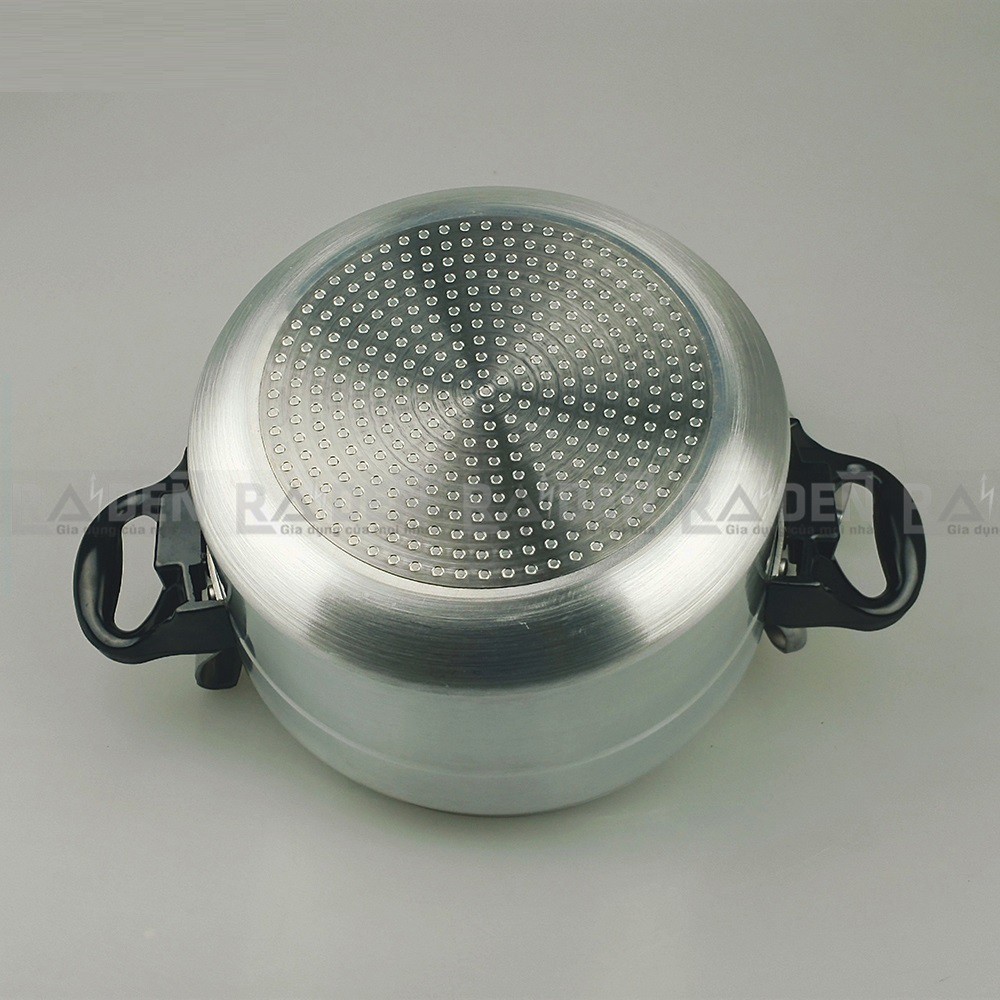 Hợp kim nhôm có đặc tính bền bỉ, chịu được lực tốt, không hoen rỉ. Ngoài ra, nó còn có khả năng dẫn nhiệt cực tốt (chỉ đứng thứ 2 sau đồng), tỏa nhiệt đều khắp bề mặt nên không sợ cháy thức ăn, khả năng giữ nhiệt lâu hơn rất thích hợp khi nấu các món ăn cần ủ nóng thời gian dài.