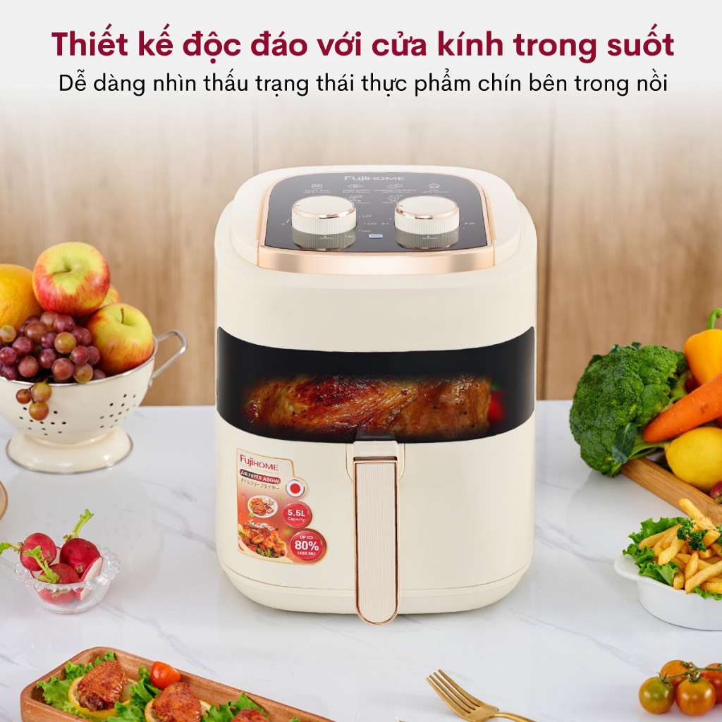 Nấu ăn dễ dàng với Fujihome A5GW - Nồi chiên không dầu quốc dân, cửa kính trong suốt, công suất lớn