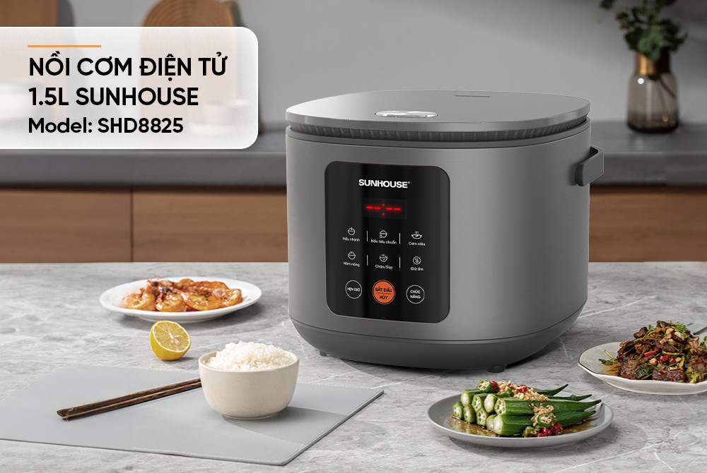 Nồi cơm điện tử 1.5L SUNHOUSE SHD8825 là lựa chọn hoàn hảo cho bữa cơm gia đình. Với kiểu dáng hiện đại, chức năng đa dạng, nồi đáp ứng tối đa nhu cầu nấu nướng, ăn uống của các thành viên trong gia đình từ nấu cơm, nấu cháo,… đến các món hầm, hấp,…