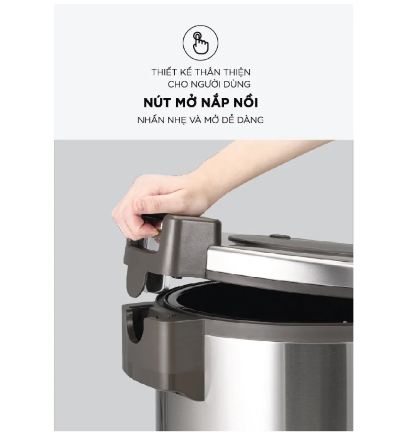 Thiết kế tay cầm tiện lợi với nắp phụ tháo rời giúp vệ sinh nồi dễ dàng hơn