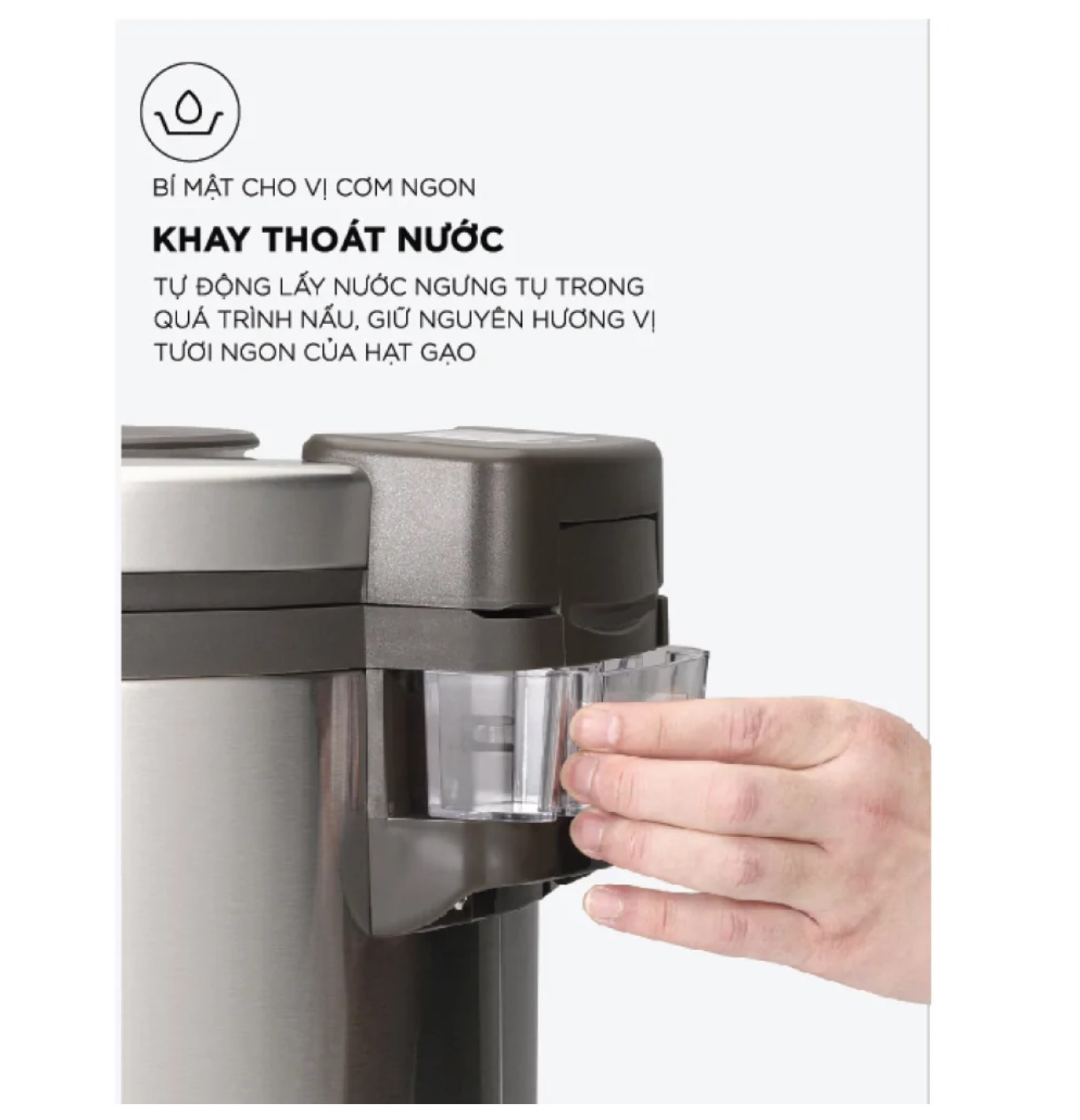 Khay thoát nước giúp giữ nguyên hương vị tươi ngon của hạt gạo