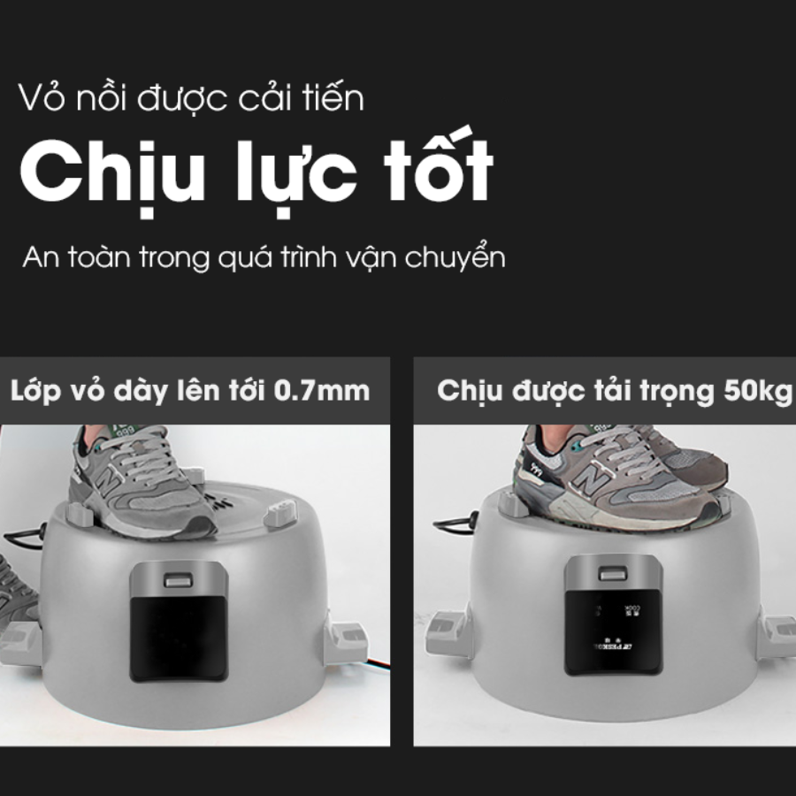 Đặc điểm nổi bật Dung tích 12 lít nấu được khoảng 5.0 - 6.0 kg gạo. Phù hợp nhu cầu ăn của khoảng 25 - 30 người ăn. Lòng nồi bằng hợp kim nhôm phủ chống dính cao