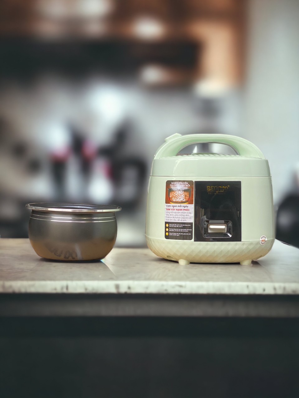 - Dung tích lý tưởng: Với dung tích 1.2 lít, nồi cơm Bennix BN-012HC là sự lựa chọn hoàn hảo cho gia đình từ 3-4 người. Bạn có thể nấu một số lượng cơm vừa đủ, giữ cho hạt cơm mềm mịn và thơm ngon.