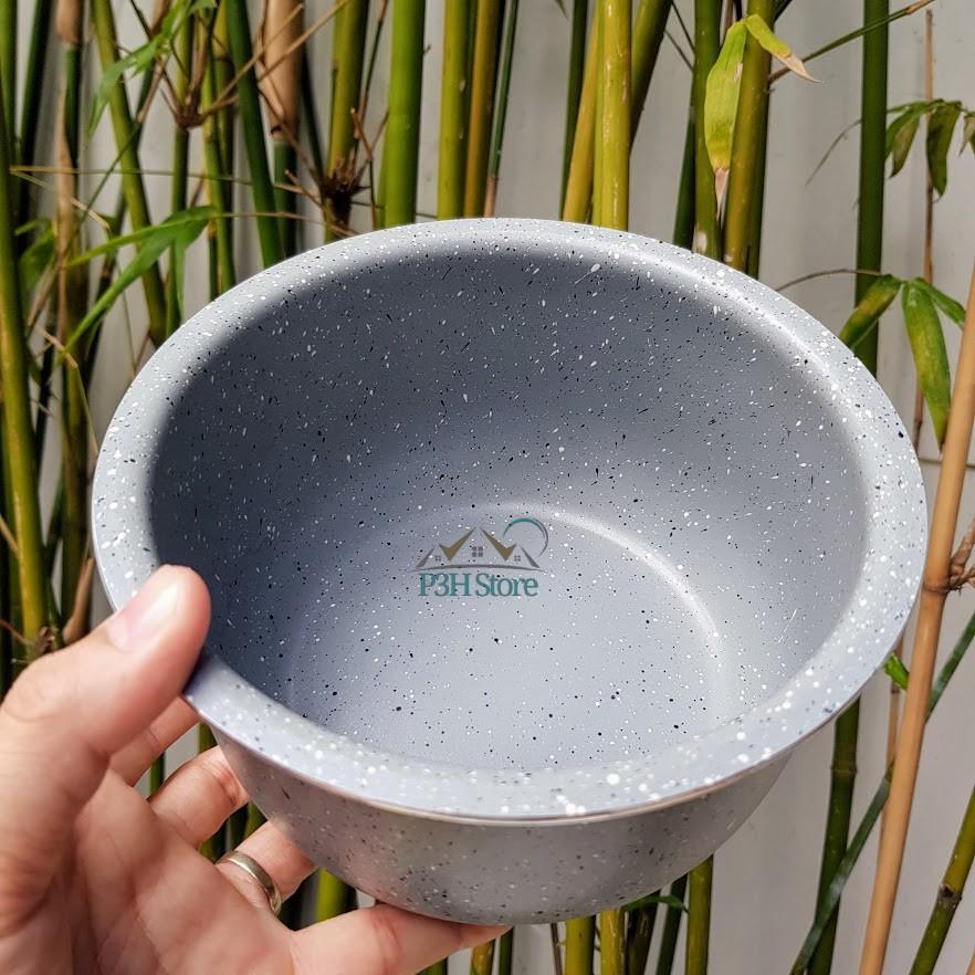 Lòng nồi bằng nhôm với lớp đá maifan chống dính, giúp truyền nhiệt nhanh và dễ dàng làm sạch