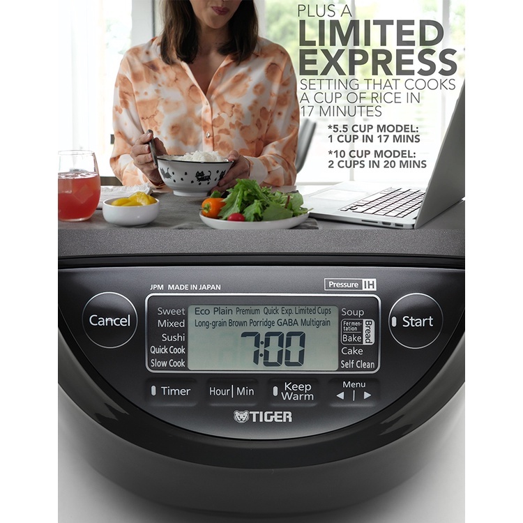 Xuất xứ : Made In Japan Loại : Express-Limited Cups – 2 trong 1 12 chức năng nấu : 11 chức năng nấu cơm (Nấu gạo trắng, Nấu cơm cực ngon, Nấu cơm nhanh, Nấu