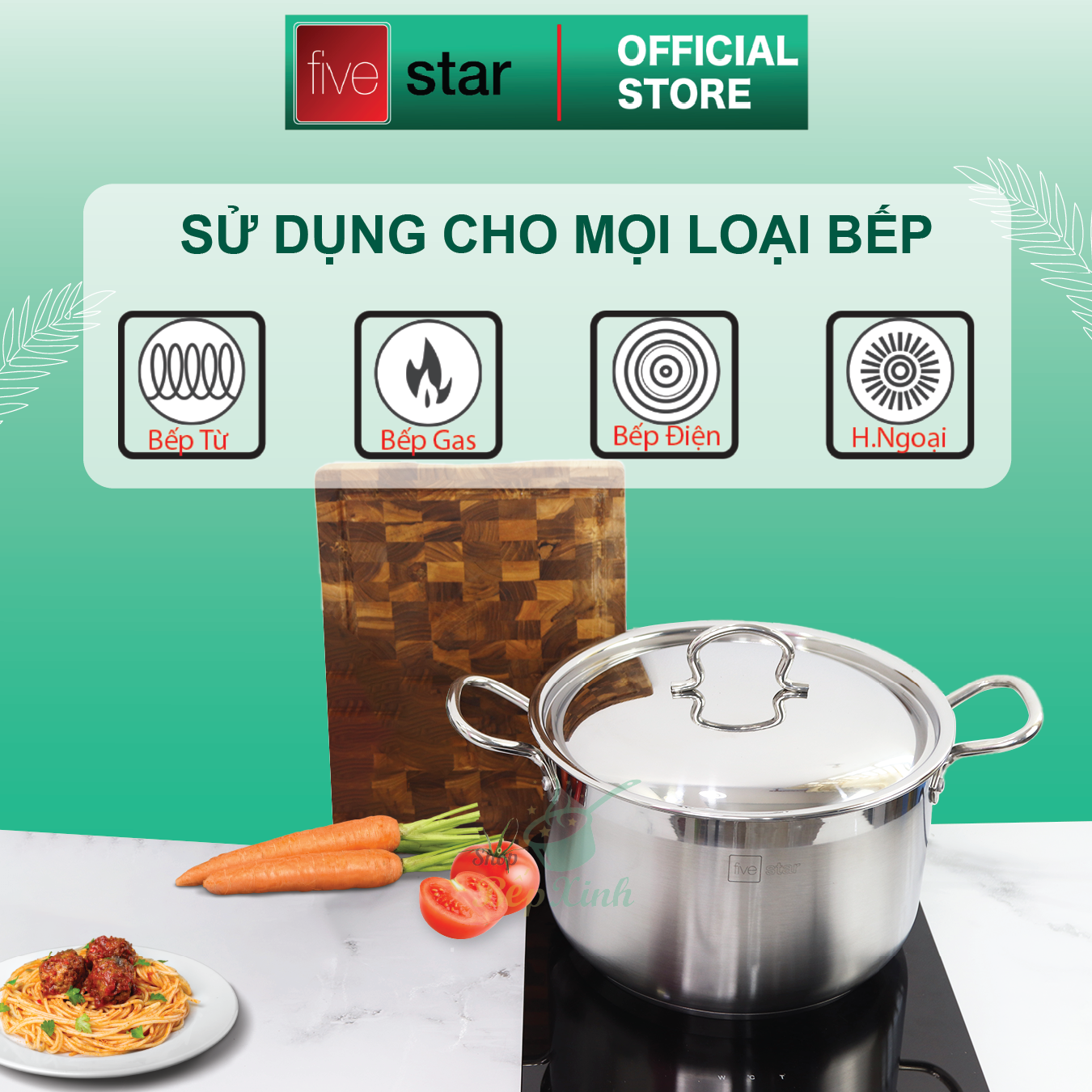 Nồi inox 430 cao cấp Fivestar 3 đáy từ ( 18cm/ 24cm / 26cm / 28cm ) , dùng được mọi bếp  Nồi inox cao cấp Korkmaz Proline 5 lít thân cao - A1165 - Hàng Chính Hãng