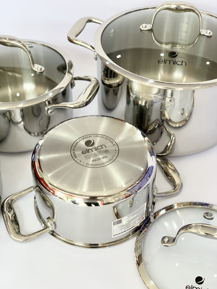 Bộ 3 nồi Elmich Trimax inox liền khối 3 lớp sử dụng cho các loại bếp #daoinox #elmich