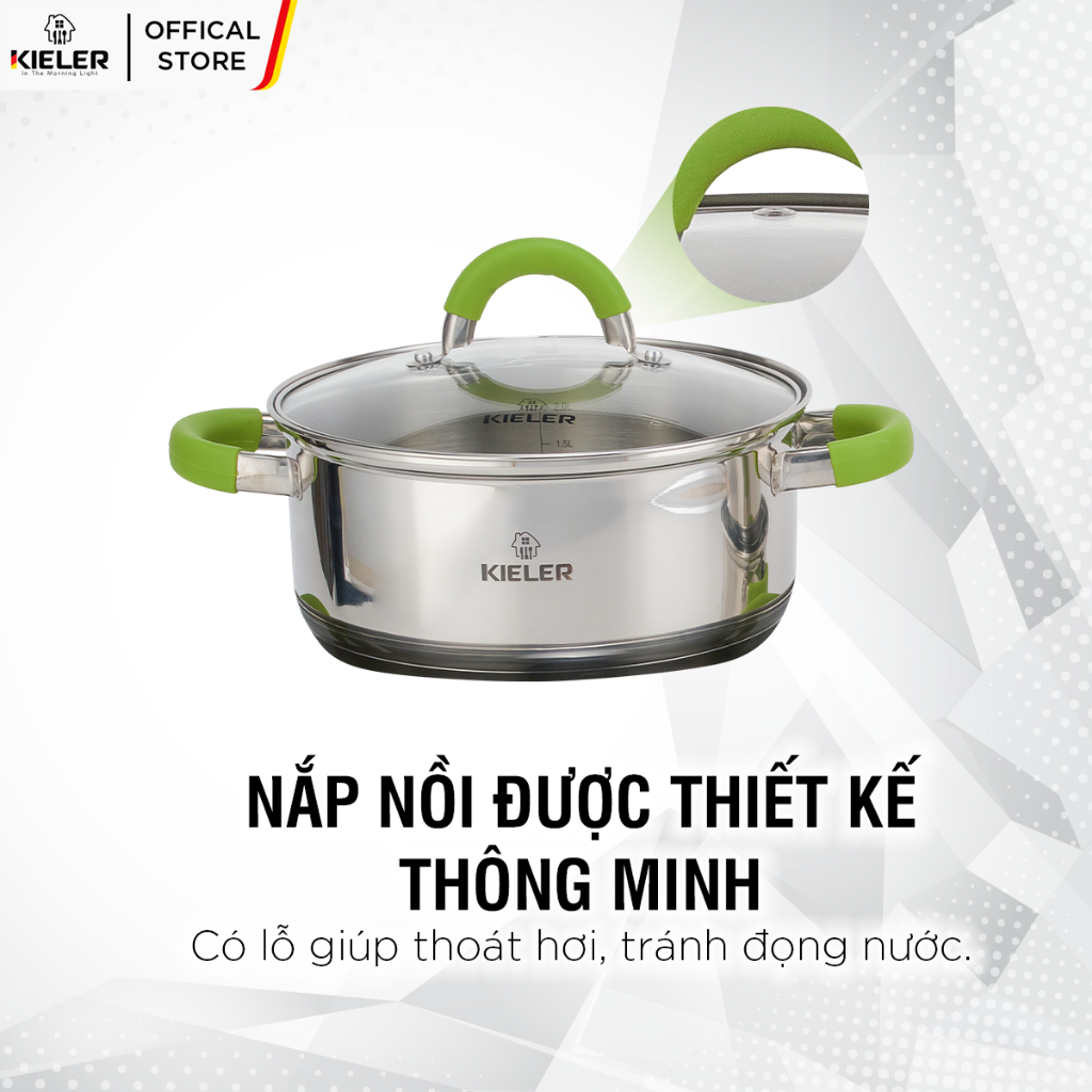 • Nắp nồi thông minh của Kieler RW1003 được thiết kế với lỗ thoát hơi, giúp điều chỉnh áp lực nước và ngăn chặn đọng nước. Bạn sẽ không phải lo lắng về vấn đề nước tràn ra ngoài hoặc nước đọng trong quá trình nấu nướng.