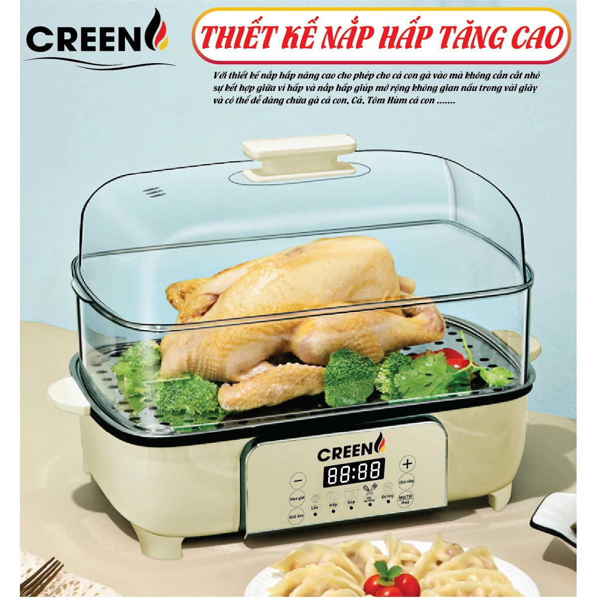 Nồi hấp điện Creen CR-135CF - Máy hấp đa năng 2 tầng Creen