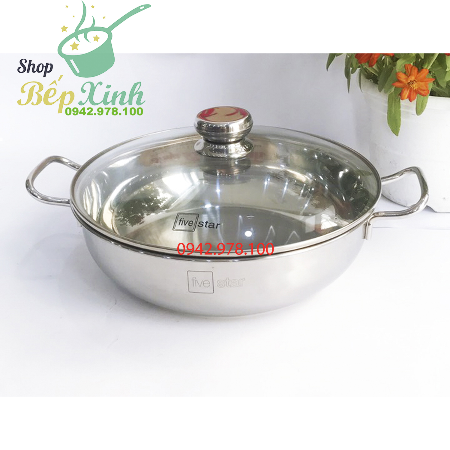 Nồi lẩu um xào inox 430 bếp từ 3 đáy Fivestar nắp kính ( 24cm / 26cm / 28cm ) NỒI LẨU INOX 32CM : – Thiết kế theo công nghệ hiện đại, kiểu dáng