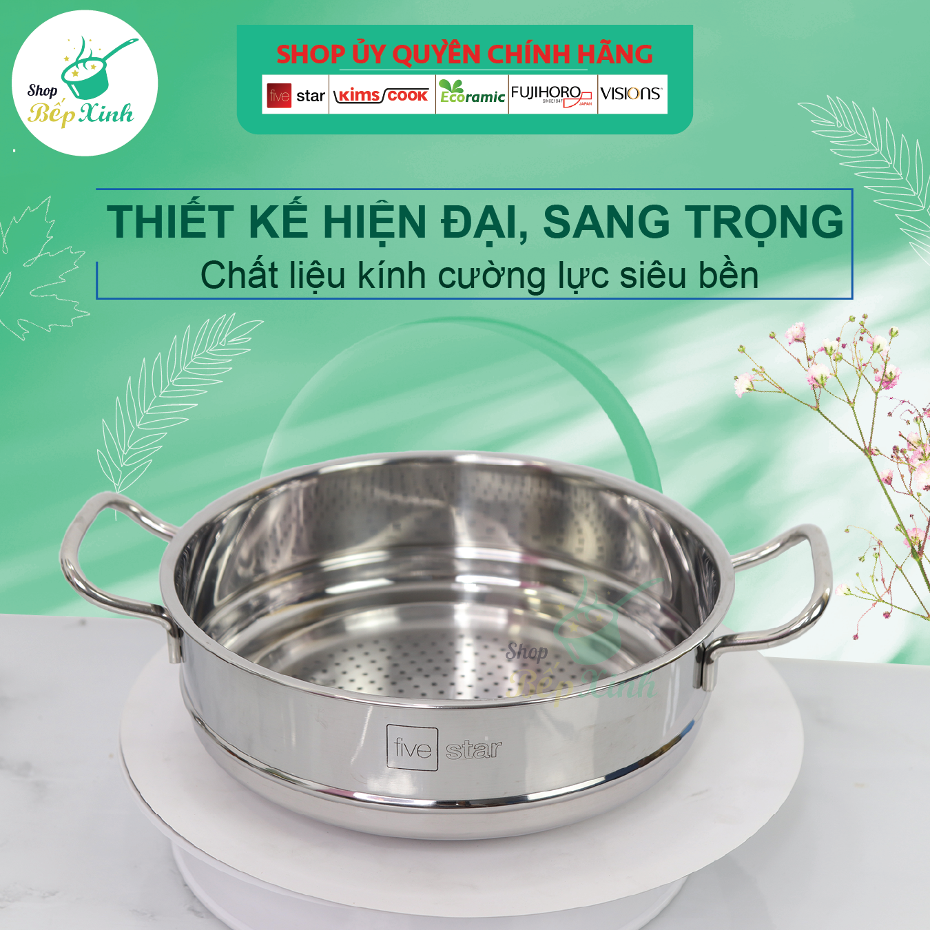 Bộ nồi xửng hấp Inox 3 đáy Fivestar 30cm bền đẹp, bảo hành 5 năm chuẩn hàng Việt Nam chất lượng cao