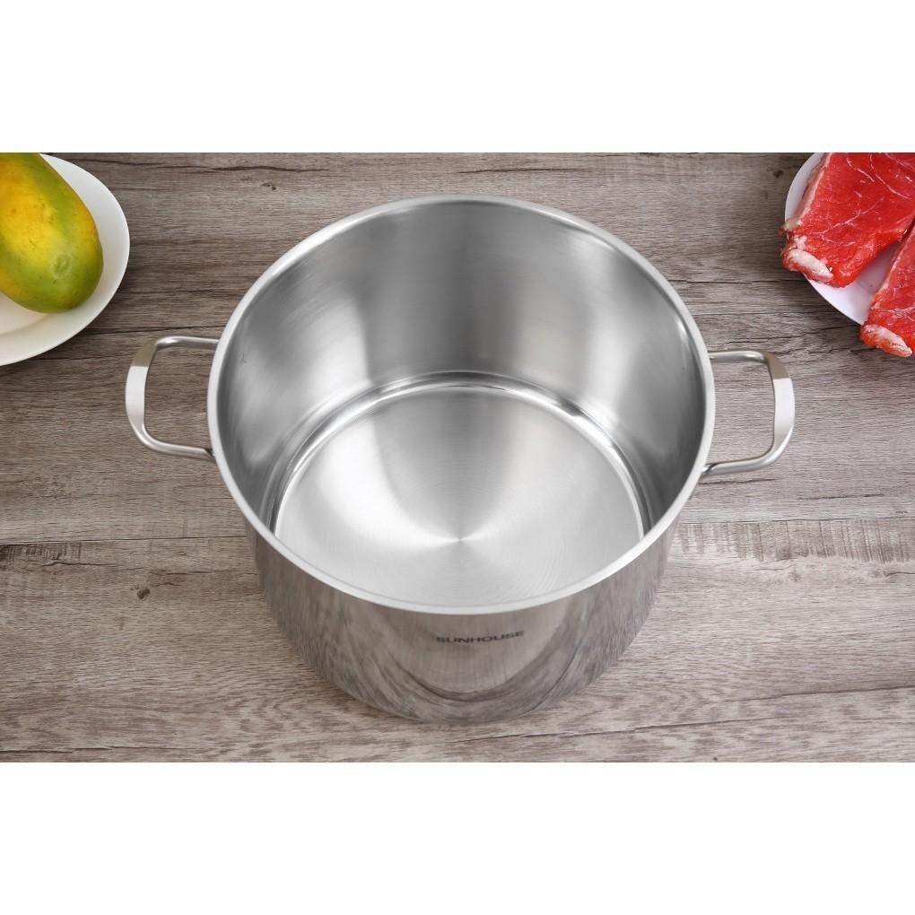 Nồi luộc gà inox 3 đáy SUNHOUSE SH28LG được làm bằng chất liệu inox cao cấp, không bị oxy hóa, kiểu dáng đẹp mắt, vung kính trong suốt, quai núm bằng inox bền đẹp, không han gỉ. Sản phẩm dùng được được trên mọi loại bếp và đáp ứng tốt nhu cầu sử dụng tại gia đình. Bạn sẽ dễ dàng luộc gà, vịt nguyên con mà không cần phải mất công chặt nhỏ.