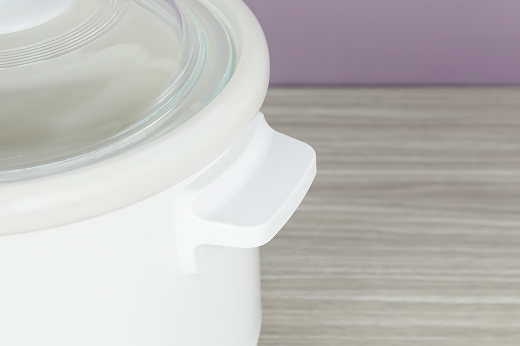 Nồi nấu chậm Panasonic màu trắng trang nhã, thích hợp với nhiều không gian bếp, có tay cầm 2 bên để bạn dễ di chuyển nồi.