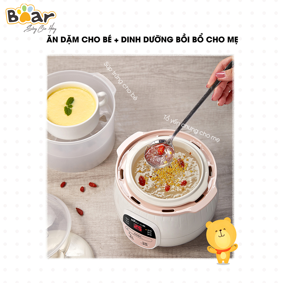 ✨Nồi Nấu Cháo Chậm, Chưng Yến, Ninh Hầm Đa Năng Bear 0,8L SUBE001 - Hàng Chính Hãng, Bản Quốc Tế Bảo Hành 18 Tháng