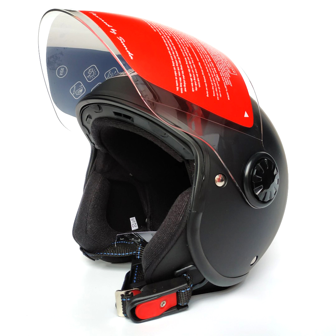 Mũ bảo hiểm nửa đầu có kính Sunda 180B tem là phụ kiện không thể thiếu khi đi xe mô tô, xe máy, mang lại sự an toàn và phong cách thời trang cho người sử