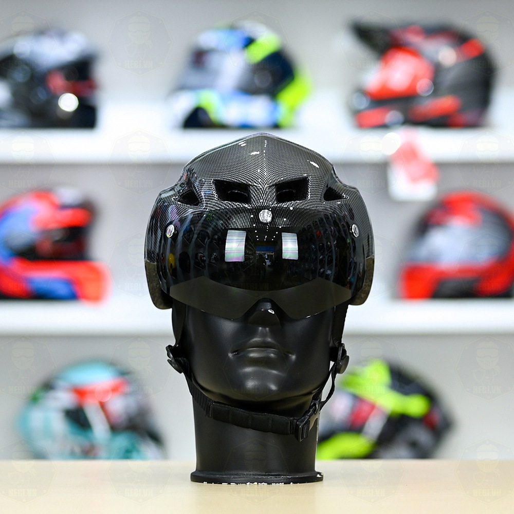 - Khối lượng: 300g, rất nhẹ - Tích hợp kính râm, có thể bật lên hoặc xuống - Có núm điều chỉnh size dễ dàng - Kiểu dáng trẻ trung, màu sắc nổi bật -