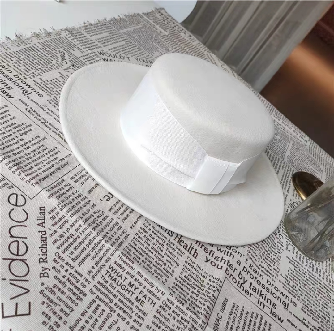 ✨Nón cao bồi vành bằng mũ rộng vành nỉ dạ phối đai trắng thời trang Hàn Quốc dona24080801